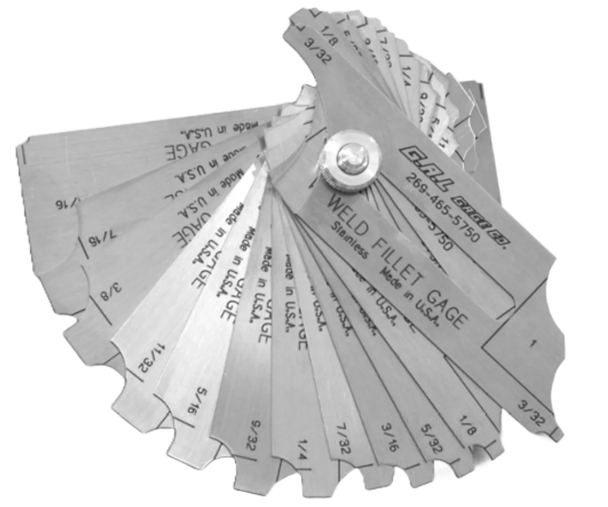 Discover precision welding with G.A.L.'s 12 Piece Fillet Weld Set. Ranging from 1/32" to 1/2" in 1/32" increments and 1/16" increments up to 1", it's perfect for checking fillet leg and throat sizes.