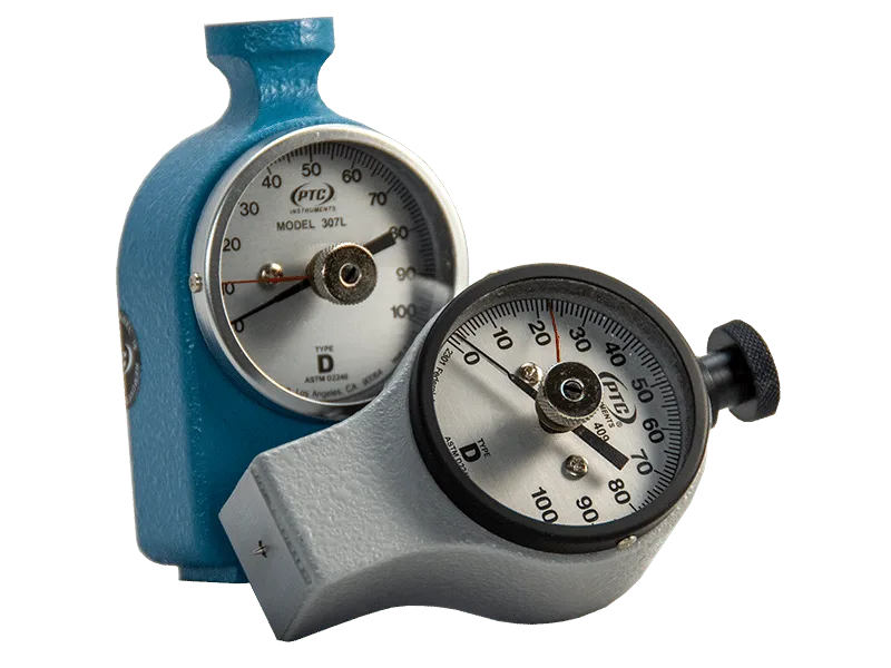 Measure the indention/penetration hardness of plastics, rubber and thick film coatings in the laboratory, shop or field according to ASTM D2240 using the PTC Durometer Hardness Tester.