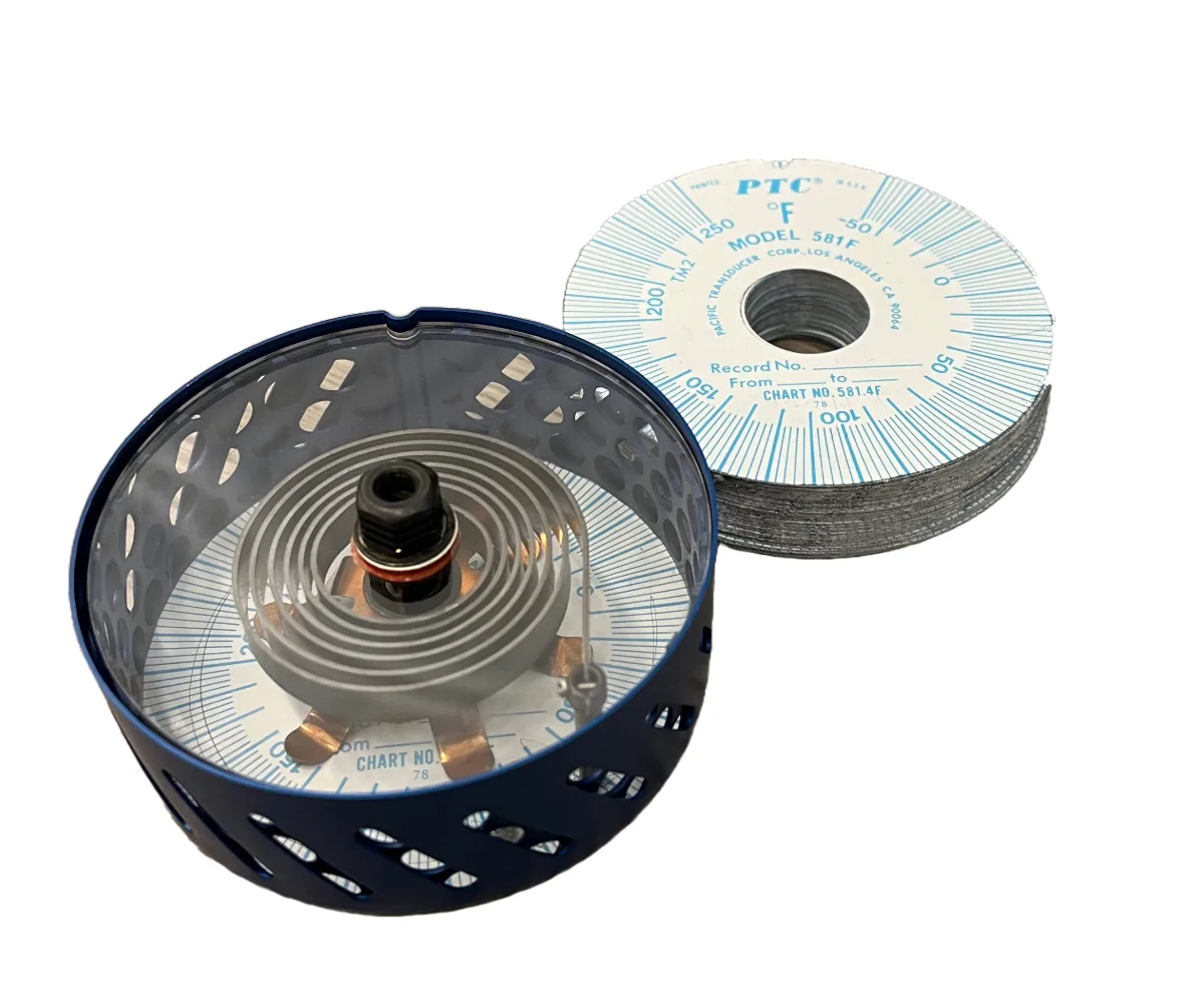 The PTC Instruments 581F is a max-min Fahrenheit chart recording thermometer designed to deliver a permanent record of air temperature fluctuations in its surrounding environment. With a temperature range of 50 to 250°F, this precise instrument is ideal for monitoring and documenting temperature changes in a variety of settings. Its applications extend to detecting drafts in heating and cooling systems, ensuring dependable performance.
