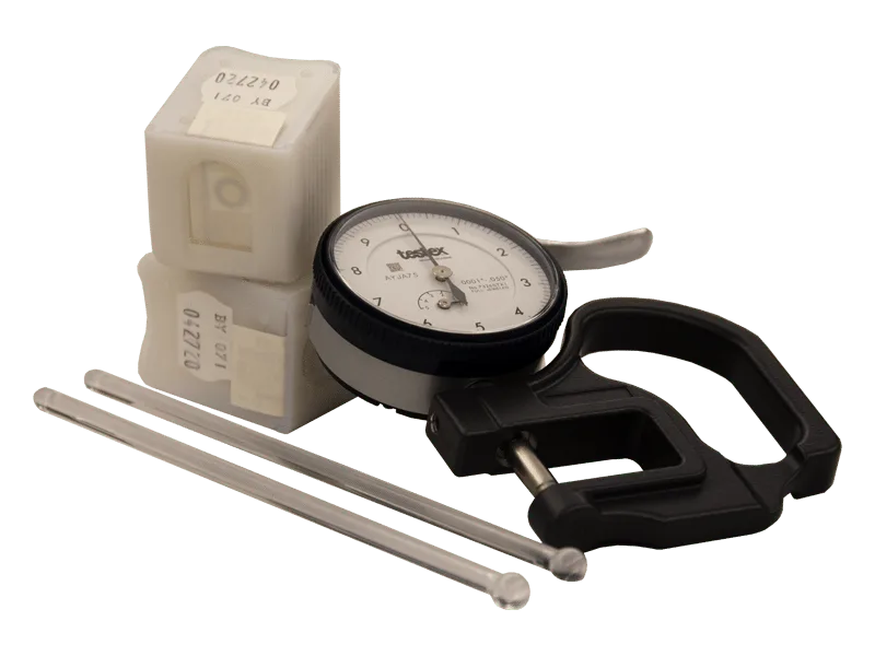 Measure surface profile according to the requirements of ASTM D4417 Standard Test Methods for Field Measurement of Surface Profile of Blast Cleaned Steel, Method C (replica tape) using this convenient, economical surface profile measurement bundle. The kit includes your choice of a calibrated Testex Standard or Linearizing Spring Micrometer, one roll of Testex Coarse (0.8-2.5 mils) replica tape (50 pcs./roll), one roll of Testex X-Coarse (1.5-4.5 mils) replica tape (50 pcs./roll), and two plastic burnishing tools. Purchased separately these items total $370.00. Save