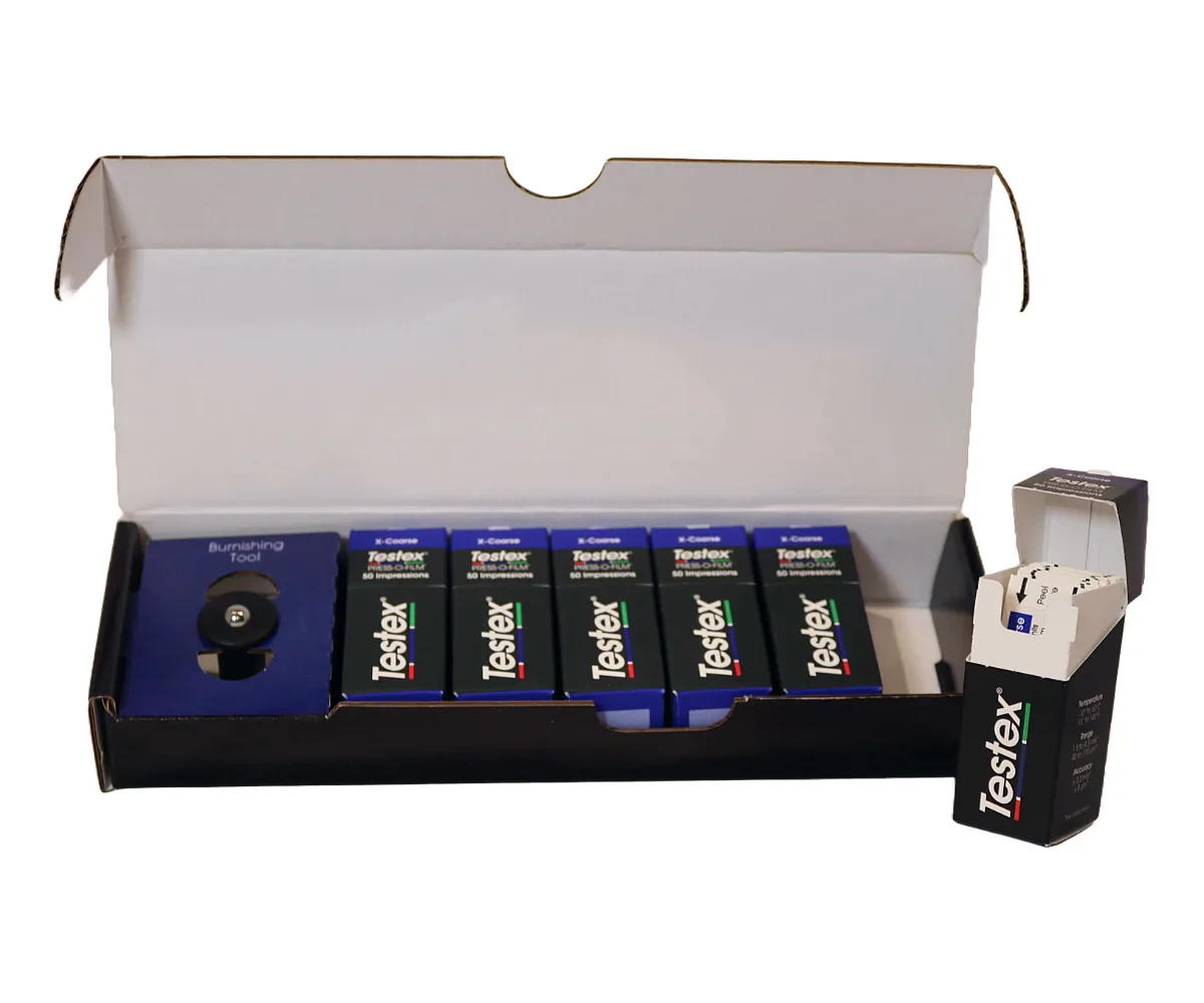 Get stocked with this 6-pack of X-Coarse Press-O-Film® Replica Tape (1.5 to 4.5 mils). Includes 6 cartons, 300 impressions total, and a burnishing tool.